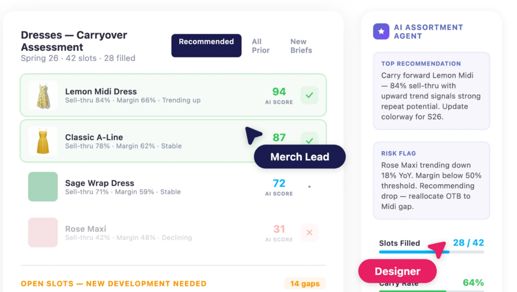 From scoring carryover candidates to highlighting assortment gaps to tracking plan drift, AI is embedded directly into the workflow, surfacing insights, identifying risks, and helping teams make better decisions, faster.